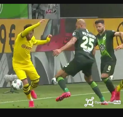 And just five seconds after the ball was thrown back into play, the 20 year old manage to humiliate Wolfsburg defender John Brooks by flicking the ball through his legs and and drawing a foul. Brooks was booked for the late challenge which seemed to come out of frustration.