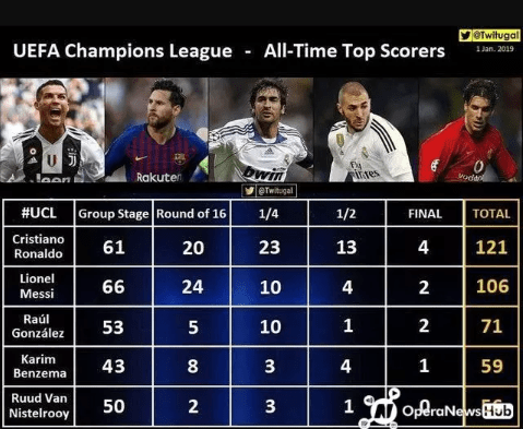 Zidane and Xavi Hernandez have the same number of assists, but Zidane played less than Xavi Hernandez played 32 assists. Cristiano Ronaldo is the player who leads the top goal scorer, followed by his arch rival Lionel Messi. Just 14 goals separate the two players as ronaldo nears retirement.