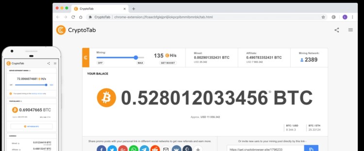 Try CryptoTab — the world’s first browser with mining feature. More than 10 million users across the globe already earn with CryptoTab Browser!