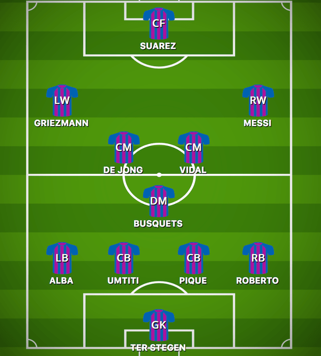 Elsewhere, Lionel Messi has overcome an injury scare and will start in the final third, while the lockdown period has allowed first-choice centre-forward Luis Suarez the chance to recover from a knee operation.
